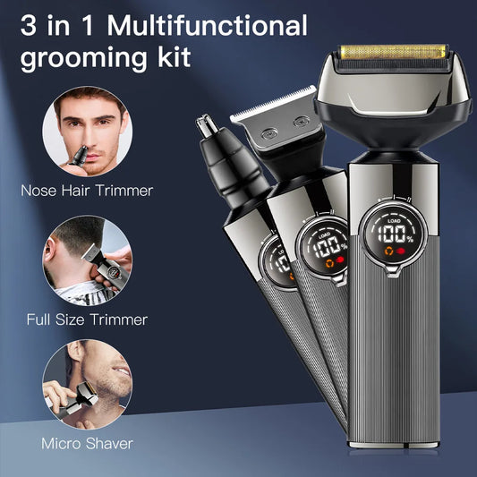 electric shaver 3 in 1 beard grooming set for men waterproof cordless hair trimmer USB charging nose trimmer