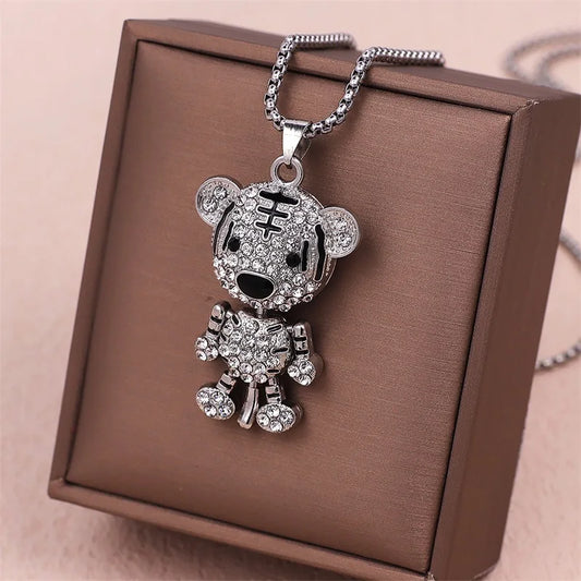 Exquisite and Cute Tiger Necklace Fashion Personality Movable Limbs Animal Pendant Niche Long Clavicle Chain Party Gift