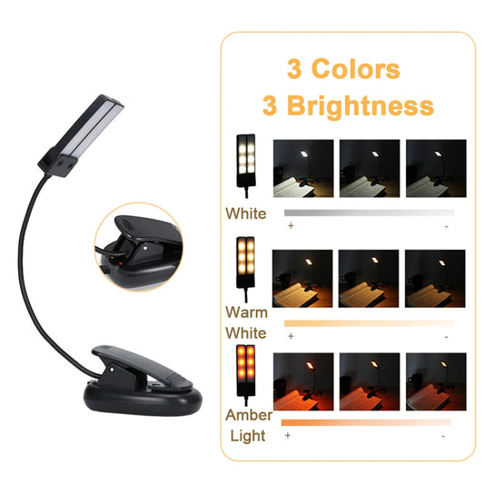 Book Light USB Lamp Clip Reading Light usb led Eye Protection Desk Lamp Books Rechargeable Lamp 180° Adjust Bookmark Night Light