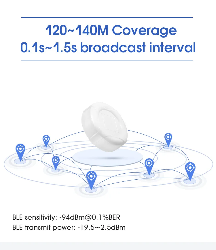 120~140m Long Range 61mm Eddystone ibeacon Ble Bluetooth Beacon iot device for indoor and Cargo tracking ble beacon
