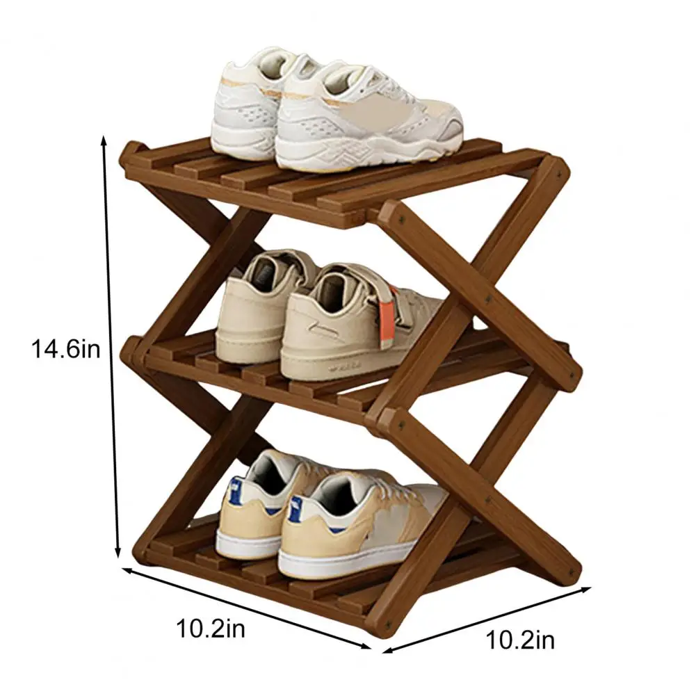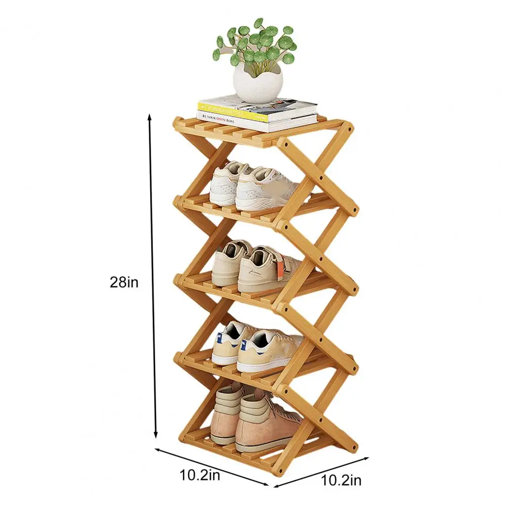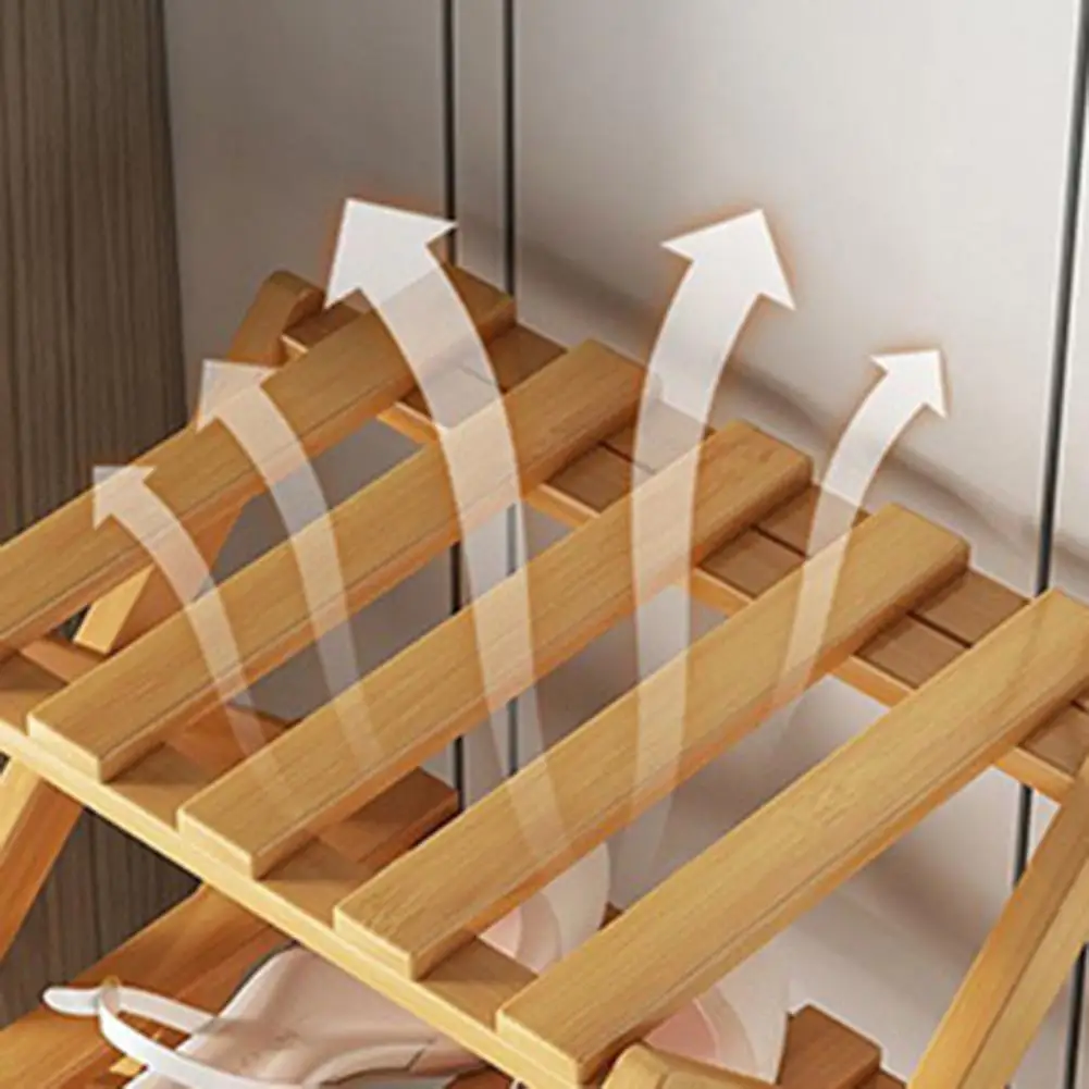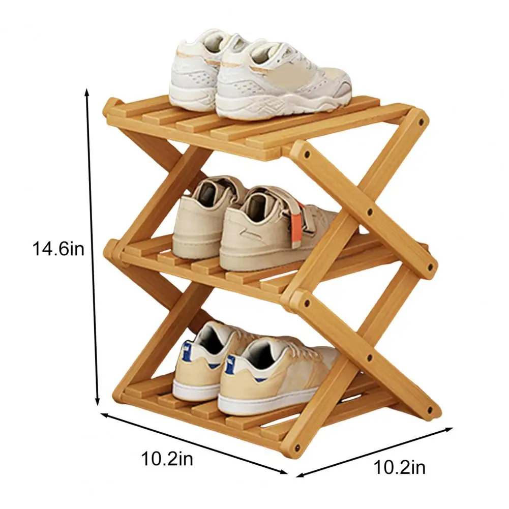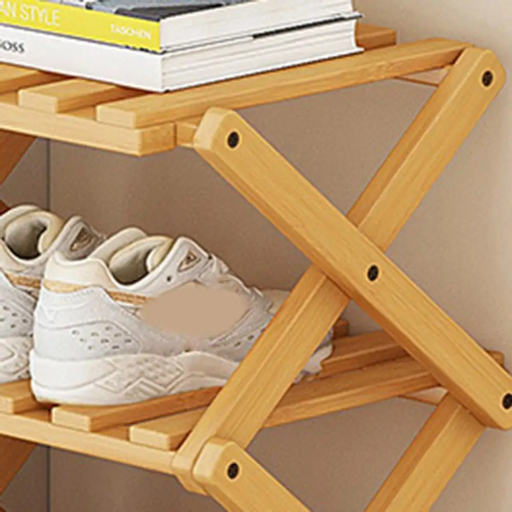 Bamboo Folding Shoe Rack Space Saving Wooden Shoes Organizer Entryway Corner Shelf Stable Construction Large Capacity Cabinet