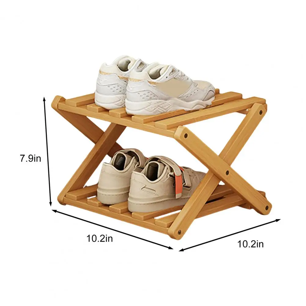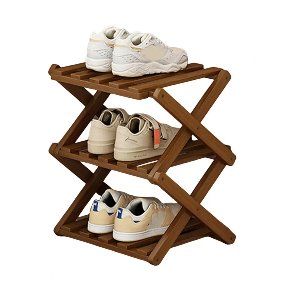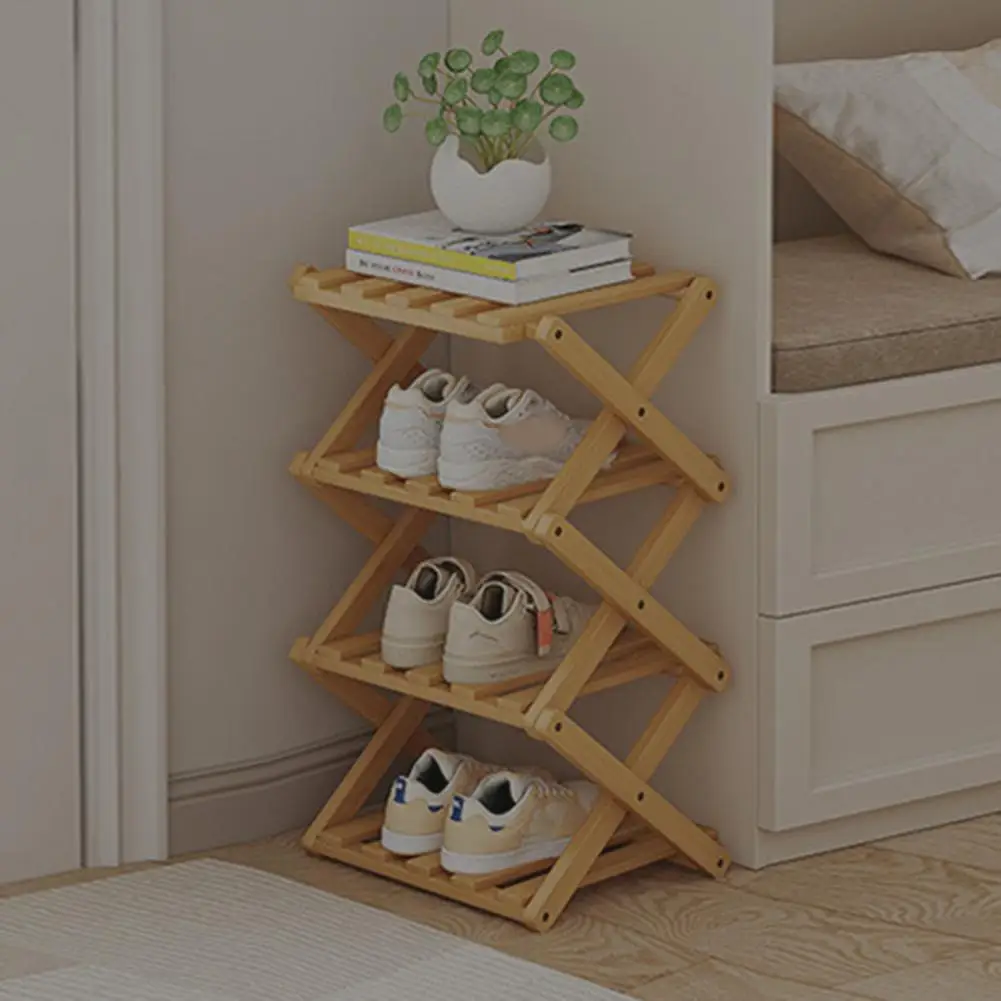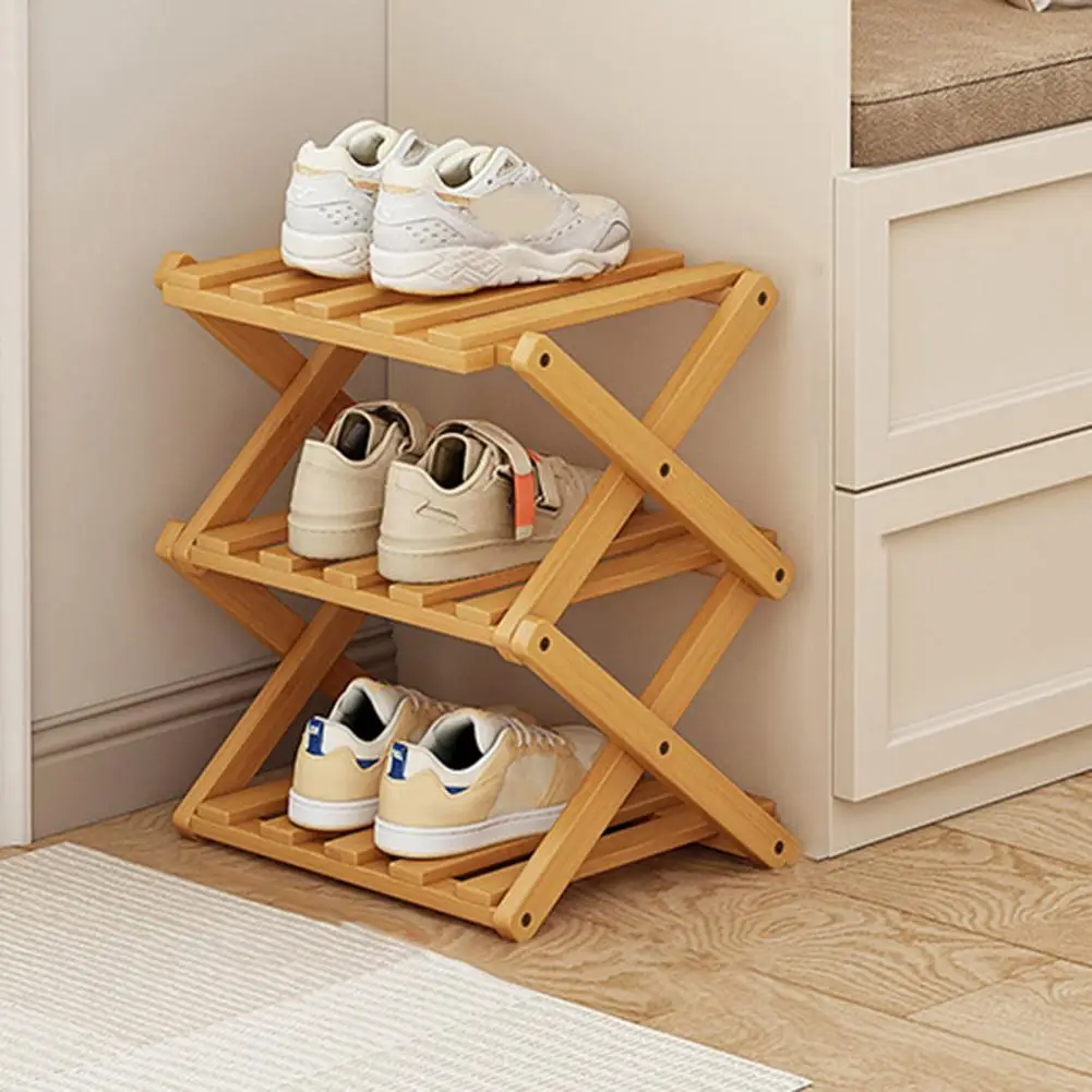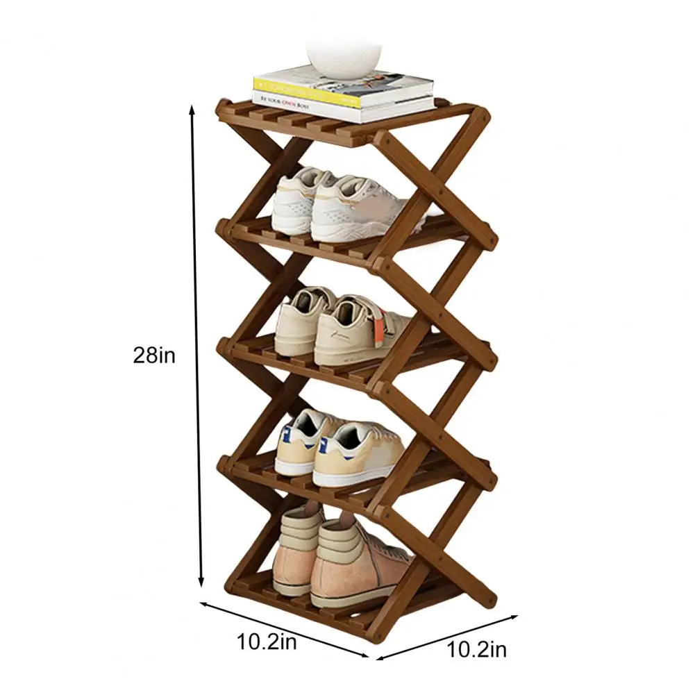 Bamboo Folding Shoe Rack Space Saving Wooden Shoes Organizer Entryway Corner Shelf Stable Construction Large Capacity Cabinet