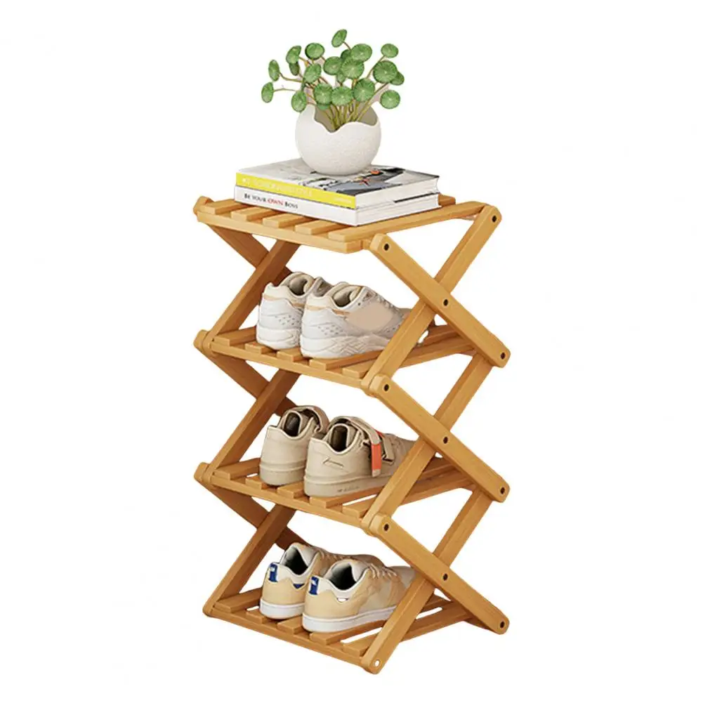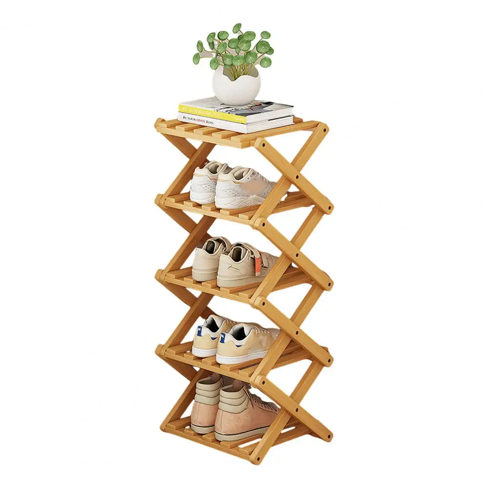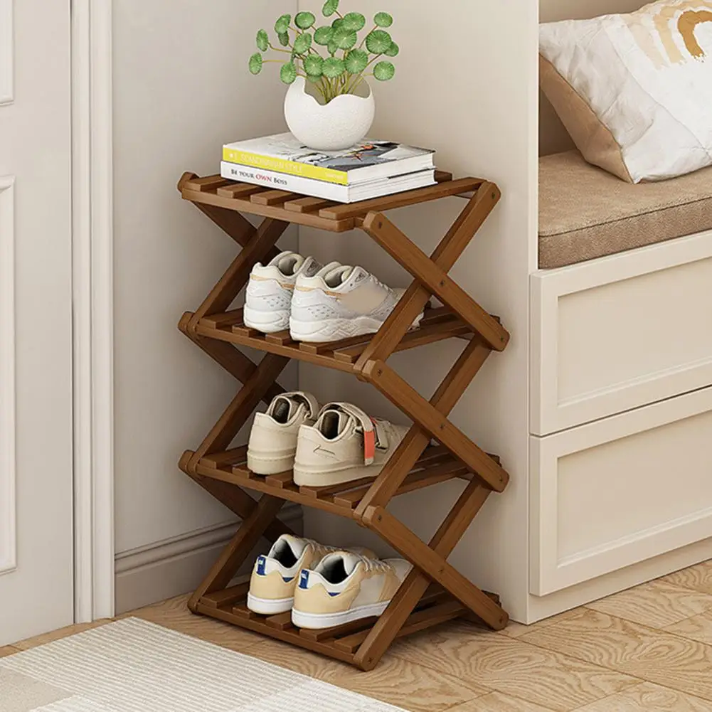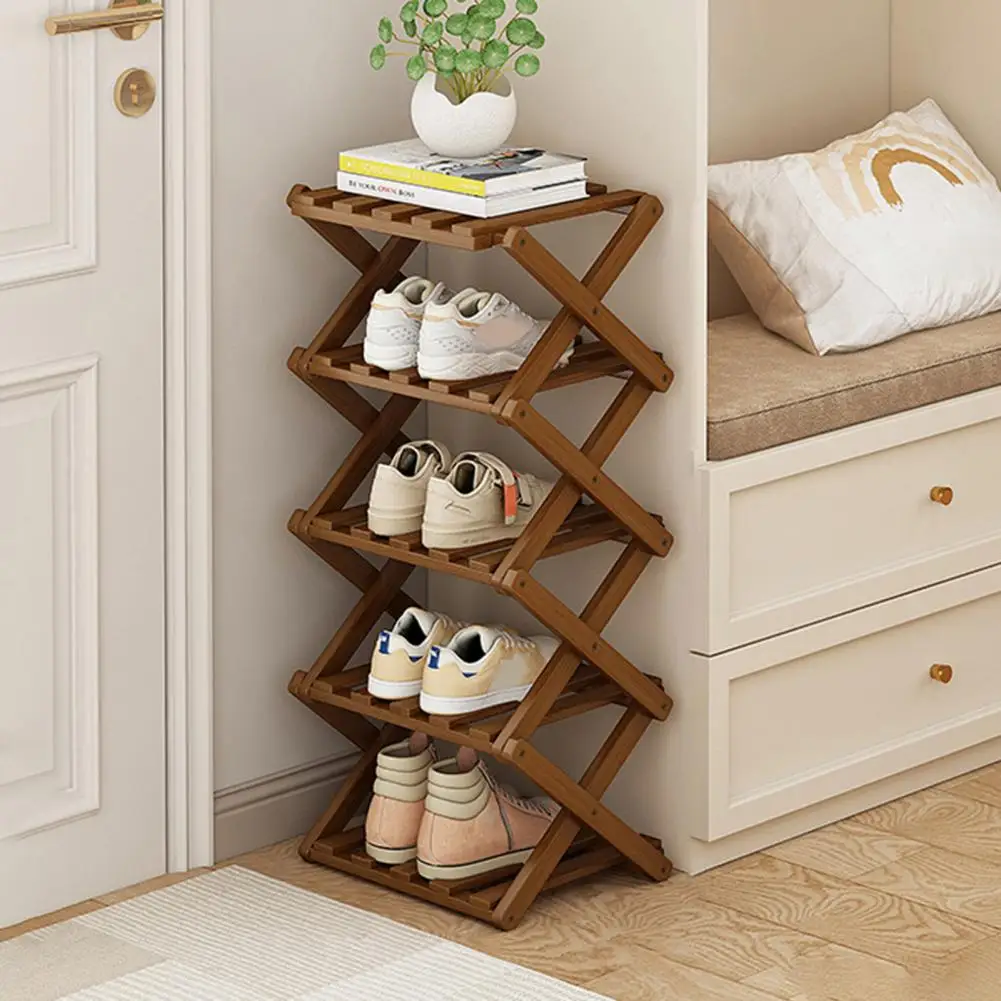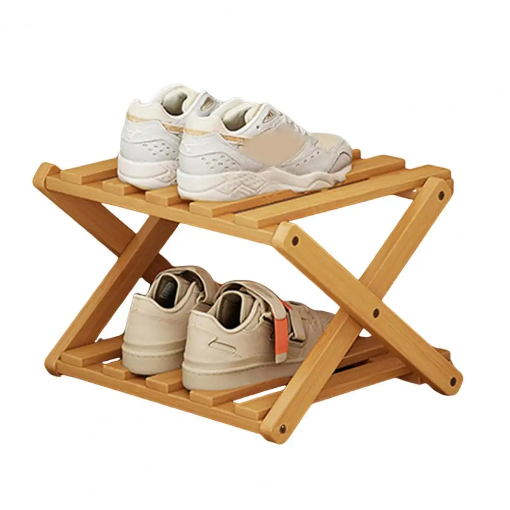 Bamboo Folding Shoe Rack Space Saving Wooden Shoes Organizer Entryway Corner Shelf Stable Construction Large Capacity Cabinet