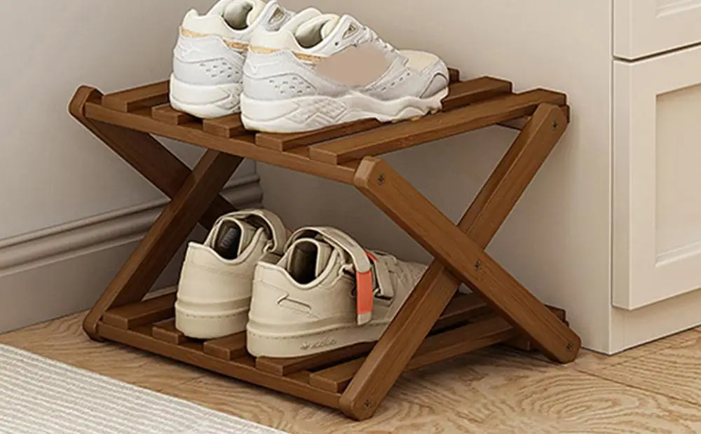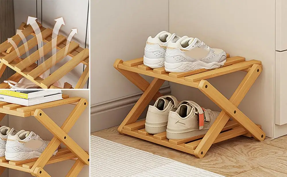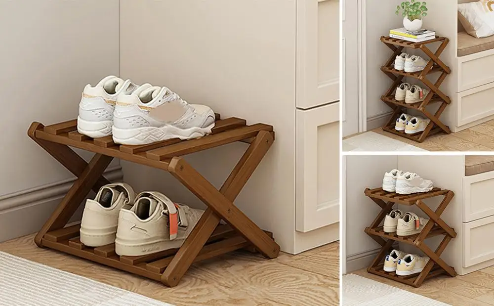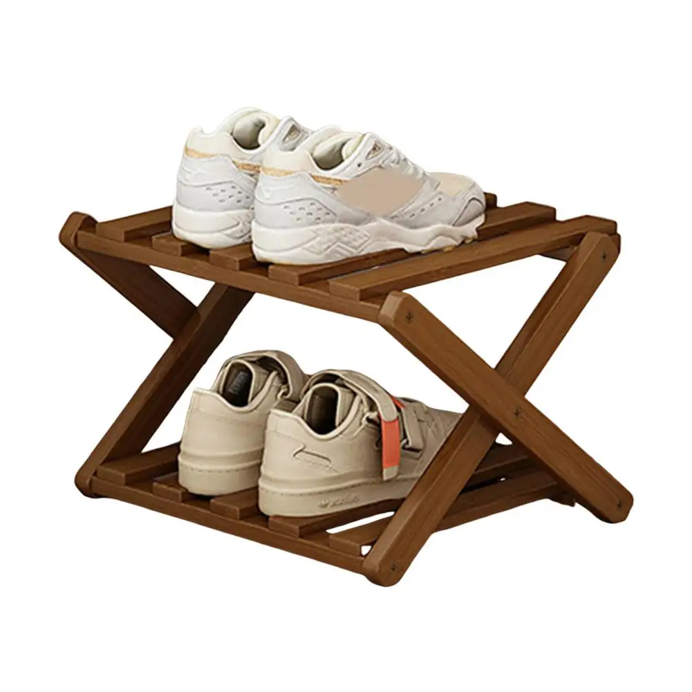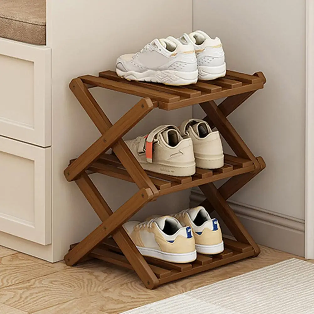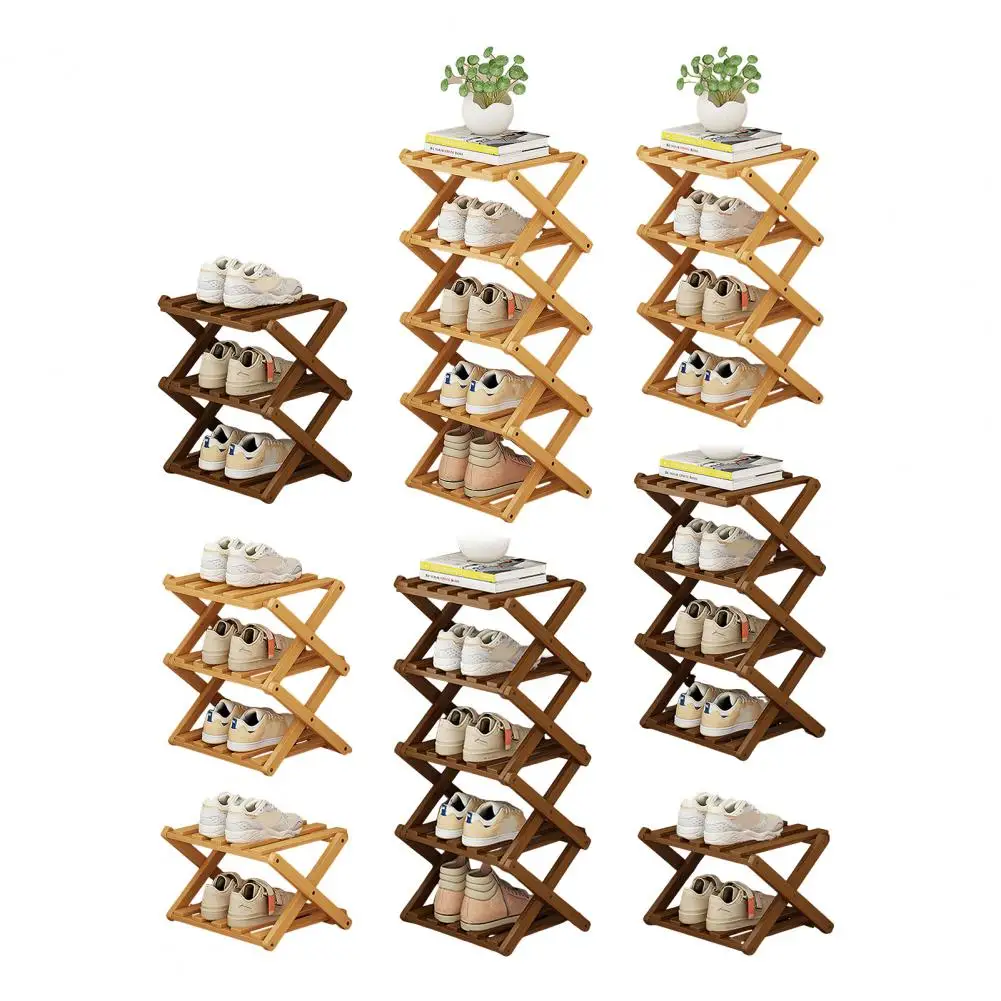 Bamboo Folding Shoe Rack Space Saving Wooden Shoes Organizer Entryway Corner Shelf Stable Construction Large Capacity Cabinet