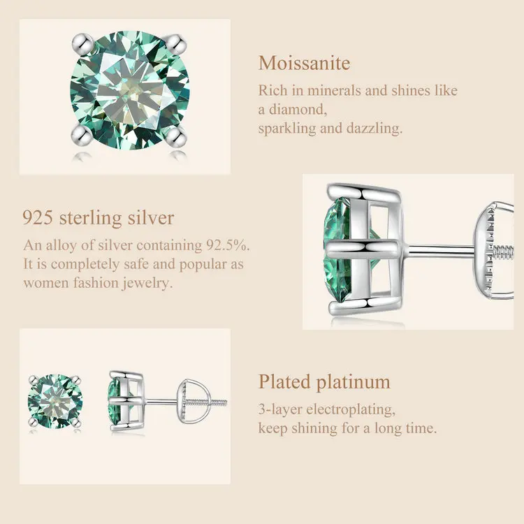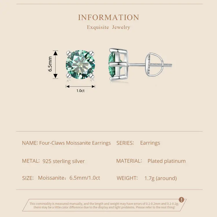 ❤ [Description] The platinum-plated earrings with sparkling moissanite are small yet exquisite, simple yet fashionable. The shimmering light in the ear is always charming.