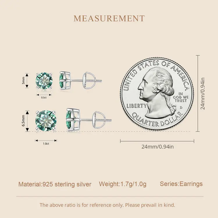 ❤ [Moissanite Size] 5mm/0.5ct & 6.5mm/1ct