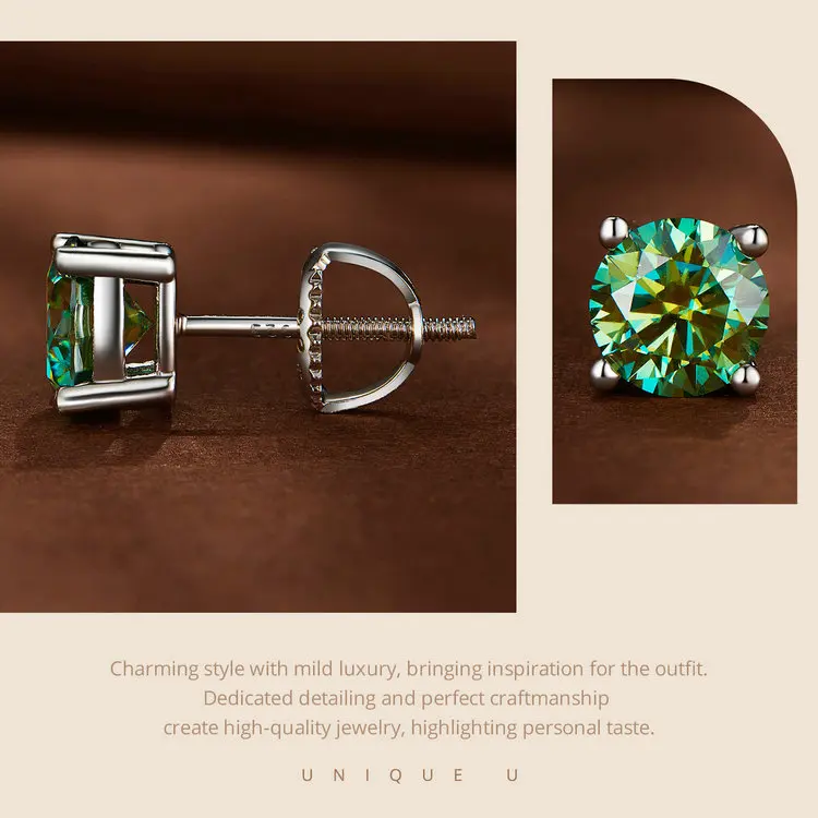 Bamoer U 2CT Moissanite Stud Earrings D Color VVS1 EX Classic Dazzling Earrings for Women 925 Sterling Silver Wedding Gift