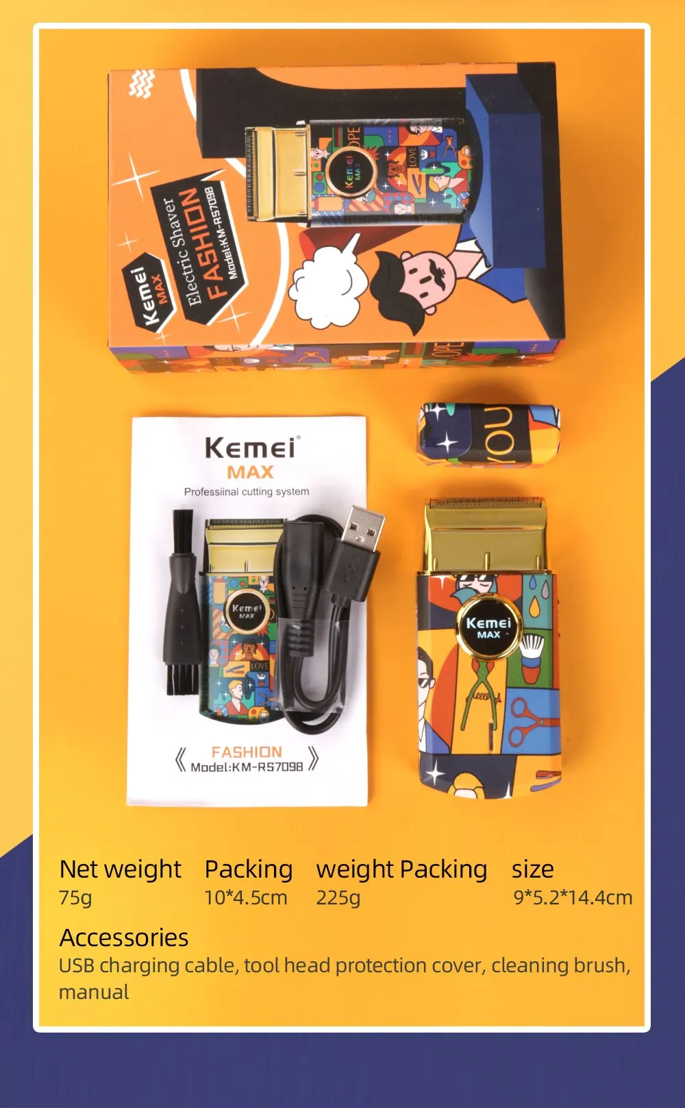 Kemei-RS7098 Mini Professional Electric Shaver, USB Rechargeable Shaver for Men, Facial Grooming Trimmer