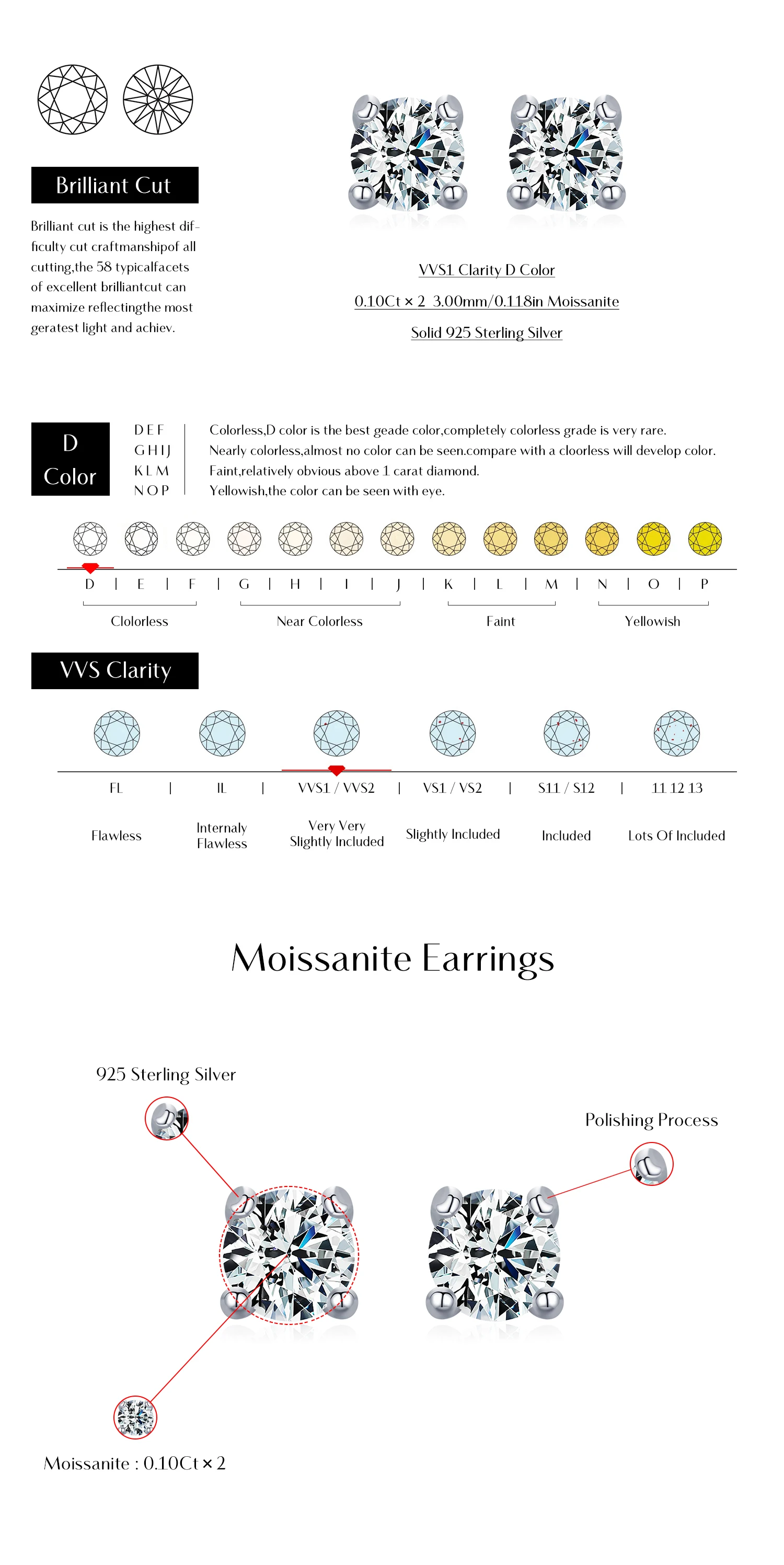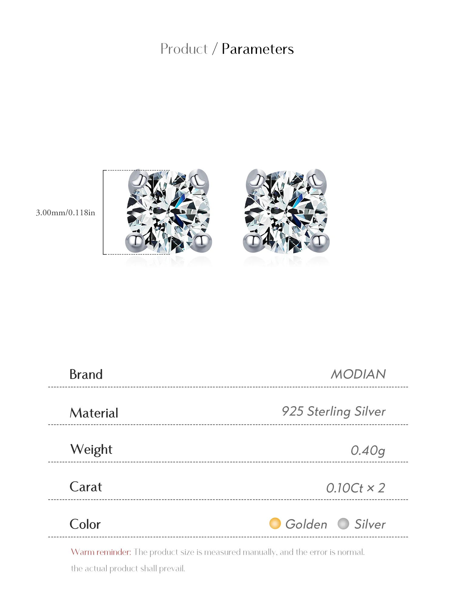 Modian Moissanite Gemstone Clear D Color 925 Sterling Silver Small Tiny Dazzling Stud Earrings For Women Wedding Fine Jewelry